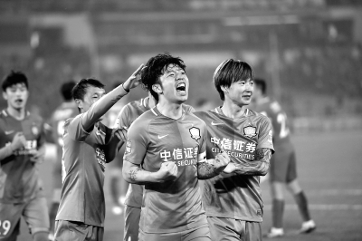 張稀哲打入點球后慶祝。 本報記者 和冠欣攝