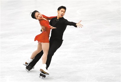 11月11日,隋文靜(左)/韓聰在比賽中。