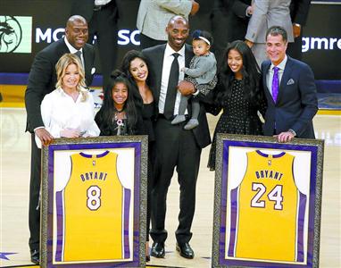 在珍妮發(fā)言結束后,在球館上空退役球衣墻上,8號與24號球衣緩緩展開,與另外9件退役戰(zhàn)袍高懸于斯臺普斯中心的上空。兩個號碼與20年的職業(yè)生涯,就此在“紫金軍”歷史中封存,成為閃耀著光輝的豐碑。雙球衣號碼退役,是湖人給予科比的終極榮譽。在NBA歷史中,科比是第一位獲得兩個球衣號碼同時退役殊榮的球員。