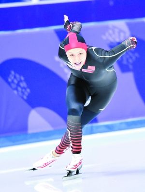 張虹在速度滑冰女子1000米比賽中。本報(bào)特派記者 白宇攝