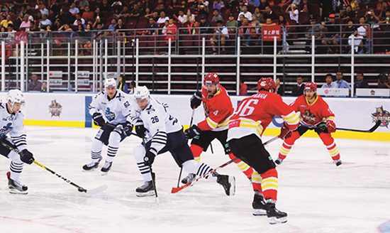 2016年9月5日,在北京五棵松樂視體育生態(tài)中心,昆侖鴻星冰球俱樂部萬科冰球龍隊主場對戰(zhàn)俄羅斯隊。當(dāng)晚,五棵松體育館涌進了近萬名觀眾,現(xiàn)場沸騰,掌聲雷動。