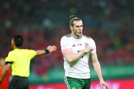 威爾士隊(duì)球員貝爾在比賽中慶祝進(jìn)球