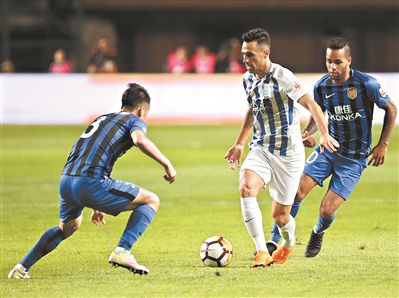 上半場比賽,江蘇蘇寧直接落入防守,廣州富力控制著比賽節(jié)奏,但得勢不得分。富力在前場的3個主要攻擊點,扎哈維、肖智和雷納迪尼奧,幾乎被對手完全隔離,3人之間難以打出配合,多數(shù)時候在密集防守下落入單打獨斗或孤立無援的局面。蘇寧主帥奧拉羅尤也在賽后表示,球隊在備戰(zhàn)時,以富力進攻端的核心球員為目標(biāo),有針對性地進行了防守訓(xùn)練。