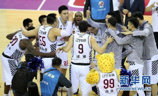 ↑遼寧隊(duì)球員在獲勝后慶祝新華社記者李鋼攝