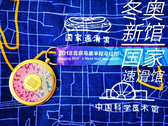 今天的賽事組織,平穩(wěn)有序,補(bǔ)給充足。獎(jiǎng)牌設(shè)計(jì)更是用心――除了有大大的2018字樣外,獎(jiǎng)牌正面的設(shè)計(jì)元素取自鳥巢俯視全景,每一個(gè)鋼結(jié)構(gòu)梁幻化成色彩紛呈的幻彩圖案,而背面是由十個(gè)同心圓組成,十個(gè)同心圓記錄十載歲月!