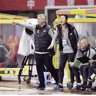 希丁克和中方教練組長孫繼海 新華社發(fā)