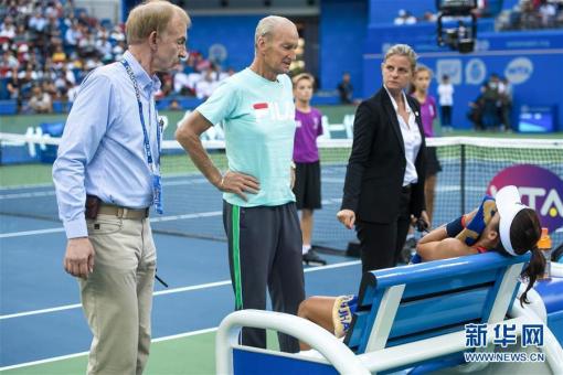 9月28日,王薔(右一)在比賽間隙因傷而感到痛苦。 新華社記者熊琦攝 新華社武漢9月28日電(記者喻珮)28日傍晚,2018武漢網(wǎng)球公開賽半決賽焦點(diǎn)戰(zhàn)之一在中國姑……