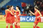 中國(guó)隊(duì)球員唐佳麗(左二)進(jìn)球后和隊(duì)友慶祝。