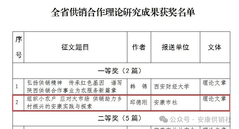 按:本文系安康市供銷合作社黨組書記、理事會主任邱德剛署名理論文章,立足供銷助力鄉(xiāng)村振興的安康實踐與探索,深入闡述了“組織小農(nóng)戶應(yīng)對大市場”的內(nèi)在邏輯,把群眾“組織起來”投身經(jīng)濟(jì)合作的實踐方法,在助力鄉(xiāng)村振興、推進(jìn)共同富裕實踐中探索出一條可復(fù)制可推廣的典型經(jīng)驗,其理論內(nèi)涵、實踐邏輯為在推進(jìn)鄉(xiāng)村振興中更好發(fā)揮供銷社的獨(dú)特優(yōu)勢和重要作用提供了有益參考,具有較強(qiáng)的指導(dǎo)意義。該文在中華全國供銷總社和陜西省供銷總社“薪火相傳七十載,砥礪奮進(jìn)新時代”主題征文中獲評“全省供銷合作理論研究成果一等獎”。