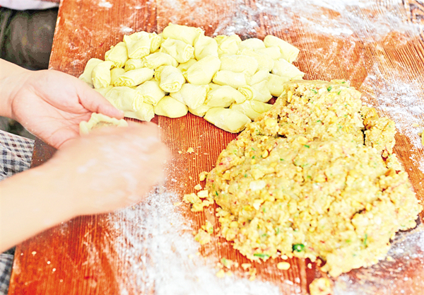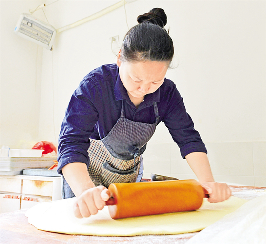 制皮、制餡、制酥、包酥、成型、蓋章、扎眼……四個(gè)人在操作時(shí)不言不語,只顧埋頭做活!