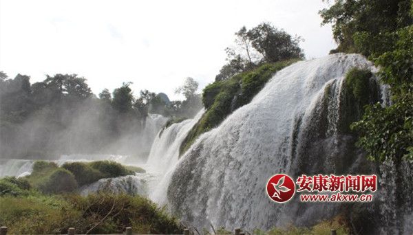 沿著河灘的花徑向前繼續(xù)走,將進(jìn)兩公里的二浪灘美麗如畫的青石山、綠水,更不堪說(shuō)。沿途觀山越景也不知道累和餓。臺(tái)頭向前看,只見(jiàn)前面不遠(yuǎn)處一座鋃白色的漢江大橋向一條巨尤騰空而過(guò)在江面上。最讓人們不可思議的是漢江水面上突來(lái)一泓清流從大橋正中下穿流而過(guò),在橋上形成寬闊的瀑流注入身邊這個(gè)大河。我們幾個(gè)任意沿橋兩邊,隨行人順臺(tái)梯而上,無(wú)論向哪個(gè)方向眺望,遠(yuǎn)山、近水、花木、房舍都自成一幅匠心獨(dú)運(yùn)的山水畫卷。大家連連感嘆這世間竟有如此勾人魂魄的秘境。在仔細(xì)打量這座大橋,原來(lái)這就是石梯鎮(zhèn)新建的一座富民橋。橋正面,魏然屹立的政府大樓上空紅旗飄楊,標(biāo)志著石梯人民勤勞勇往向上的精神。