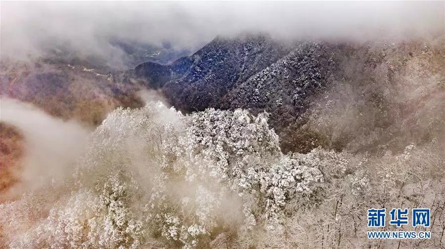 雪后初霽的鬼谷嶺國家森林公園(11月8日無人機(jī)拍攝)。 新華社記者陶明攝
