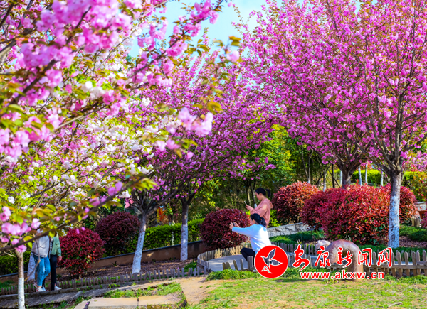 遠遠望去,一團團、一簇簇櫻花肆意地舒展著身姿,在風中輕輕顫動,爛漫而美麗,公園里不時吹來陣陣微風,撩撥起片片花瓣,任其在空中隨風散落,煞是好看,漫步其間,繽紛的“櫻花雨”伴著浮動的“櫻花香”,也能沉醉于花海之中。EJ8安康新聞網