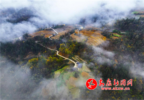 大湖溪位于鎮(zhèn)坪縣城關鎮(zhèn)友誼村,距離縣城大約半小時車程。沿207省道順南江河而下,穿過南江湖大壩就到了谷口。一條嶄新的柏油馬路沿溪流伸向大山深處,茂密的森林覆蓋著山巒,星星點點的農舍、民宿集群和土地,若隱若現(xiàn)地掩映在云霧繚繞的群山之間,許多保存完整的巴山古老傳統(tǒng)民居石板屋,炊煙裊裊,與淡淡的晨霧相互交織,構成了一幅渾然天成的水墨畫卷。放飛手中的無人機,我貪婪地捕捉這一幅幅夢幻般的景致。