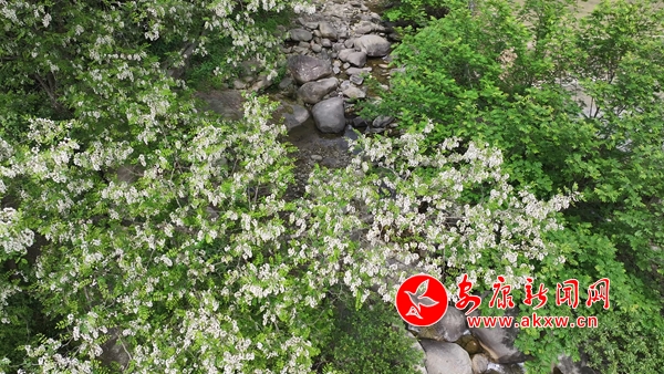 槐林漾瓊花 芬芳醉萬家。眼下正值槐花盛開的季節(jié),漢陰鳳凰山國(guó)家森林公園內(nèi)上千畝的槐花如云似錦、沁人心脾,潔白的槐花將山巒裝點(diǎn)得如詩如畫。