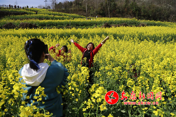 陽春三月,嵐皋縣城關鎮(zhèn)水田村1000畝繁茂的油菜花海,為大地迅速披上一層金色的盛裝,吸引眾多的游客紛紛前來觀光旅游,分享陽春三月、鳥語花香的鄉(xiāng)間美麗景色。(攝影 廖霖) 6TZ安康新聞網(wǎng)