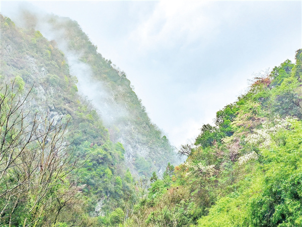 四月的暖風(fēng)輕輕掠過冷水河畔,簇簇山桃花如火燃燒起來,從河畔蔓延至山坡,宛如不經(jīng)意間灑落的胭脂,又似少女臉頰泛起的嬌艷紅暈,令人心醉神迷。春風(fēng)是個不知!