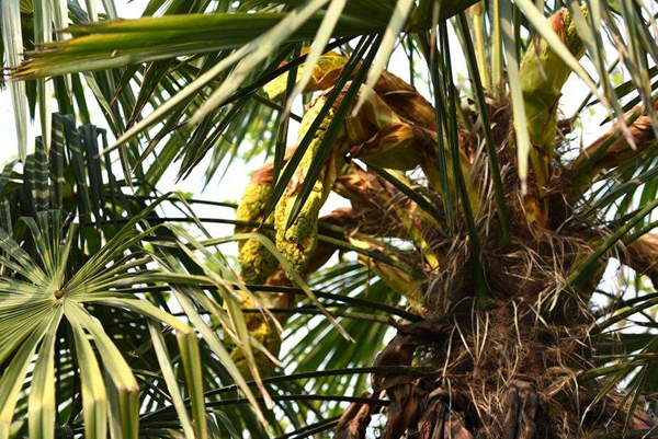 到了80年代初,當(dāng)?shù)貢r(shí)興起棕床,睡起來(lái)柔軟又有彈性,舒適又隔潮氣,家道殷實(shí)人家相繼都拆掉了稻谷草鋪就的架子床換成美觀新潮的棕床,后來(lái)我才知道,做一張床,除了木料和繩子,還得十幾塊工匠錢,記得父親在陡坡上搬樹摔了一跤腰部受損,天氣一變就不停地呻吟,姐姐便使喚我們割遍自留山的棕,勉強(qiáng)織了一張床,是夜,父親睡得很安穩(wěn)。棕樹開的花也很有特點(diǎn),花形呈佛手狀,花籽如粟米子樣金黃亮色,味道有點(diǎn)淡淡的苦,婆在世時(shí)常說棕樹花燉豬心,娃娃吃了補(bǔ)心肺,長(zhǎng)記性,我上學(xué)時(shí)再生僻的詩(shī)文,看過一遍就爛熟于心,或許與吃過此湯不無(wú)關(guān)系,我在想,棕花入藥對(duì)治愈新冠肺炎應(yīng)該療效不錯(cuò),它也是一副神奇的中藥方劑。