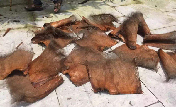 棕樹不擇地勢(shì),大多生長(zhǎng)在樹叢里、巖石邊,割棕不僅需要技巧,也是很危險(xiǎn)的活計(jì),上坡前把棕刀兒磨好,吃罷早飯,領(lǐng)著妹妹,帶上草帽子和彎刀,砍岀條路來(lái)直通棕樹林,先是自上而下把棕板割開,再抱著棕樹劃一圈,一匹棕就落下來(lái),一圈又一圈,一天下來(lái)大概能割兩三斤,留下的那層層年輪,伴著我一年年長(zhǎng)高長(zhǎng)大,最難受的是暑假割棕時(shí),太陽(yáng)當(dāng)頭暴曬,棕灰落滿頭發(fā)、臉頰,和著汗水流進(jìn)脖子里又癢又扎,看看也沒別的辦法,只有扯起袖子一擦,臉上抹得跟猴屁股似的,直到日落時(shí)分,索性脫個(gè)凈光,跳進(jìn)溪溝里洗個(gè)痛快,坐在青石頭上晾干,再背上柴禾提著棕回家,享受媽媽變著花樣做的晌午飯。