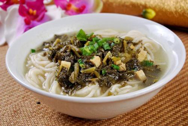 我的家鄉(xiāng)在山水環(huán)繞、滿眼皆綠的秦巴山區(qū)小城——中華太極城——旬陽縣。好山好水孕育出了眾多的美味食物,其中最具代表的要數(shù)“酸菜面”,也叫“漿水面”,它當之無愧的坐上了頭把交椅。好吃的酸菜面,自然要有泡的夠酸夠脆的酸菜和筋道的兩摻面,兩摻面是由豌豆面和小麥面和制而成。泡了兩三日的酸菜與手工搟好的兩摻面搭配在一起,一碗熱氣騰騰的酸菜面就盛到你的面前,若是再加上自家做的大蒜辣子,真是讓人胃口大開、大口朵頤、精神倍爽。特別是在夏天,或是在酒醉后的第一餐,嚼起清脆的酸菜、筋道的兩摻面、清香的大蒜辣子,頓時讓人滿口生香、酣暢淋漓、回味無窮,就會忍不住要多吃幾口。多種味道混合起來產(chǎn)生奇異的味覺沖擊,酸的爽快,辣的夠味。最后,再喝上幾口熱氣騰騰的面湯,直吃得要撐破肚皮才罷休。