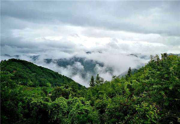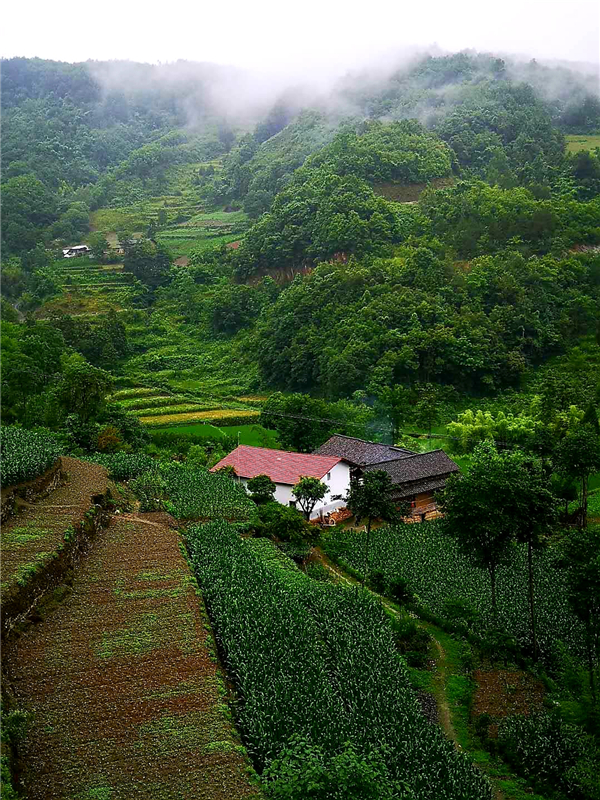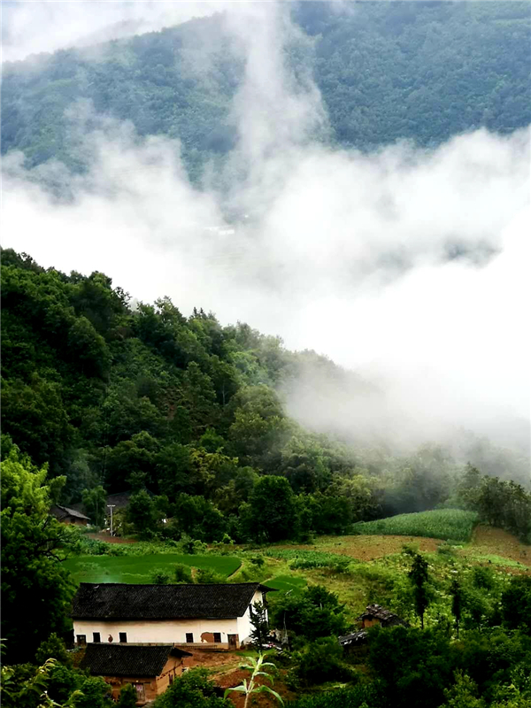 小橋,山澗的溪流;田園,吃草的耕牛;花草,池塘的荷花......一邊淋著淅淅瀝瀝如發(fā)如絲的毛毛細雨,一邊在薄霧朦朧中散步,置身在這天然氧吧中,看天看地看山看水看滿山云霧繚繞,看自然和諧之美,看群山簇擁我于懷抱之中,空曠靜謐中汲取一塵不染的力量與信念。極目所致,思緒萬千,腦海里寄存的是古人話語“非淡泊無以明志,非寧靜無以致遠”,恐怕也只能是綠水青山中來實現(xiàn)自己的理想與愿望吧!