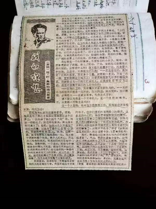 在新兵連我便開始記學習筆記,剪貼報紙上的重要文獻。一次在蘭州軍區(qū)《人民軍隊報》看到(蘇聯(lián))尼·阿·奧斯特洛夫斯基《我的理想》,我一口氣看了好幾遍,并剪下來貼在日記本上,有空就翻著看,把經(jīng)典的部分標注起來。這在當時“人活著到底為了什么?”“年輕人有什么樣的理想?”“青春怎樣才能放射耀眼的光芒?”“什么是真正的幸福?”大討論中,無疑是最好的學習教材。