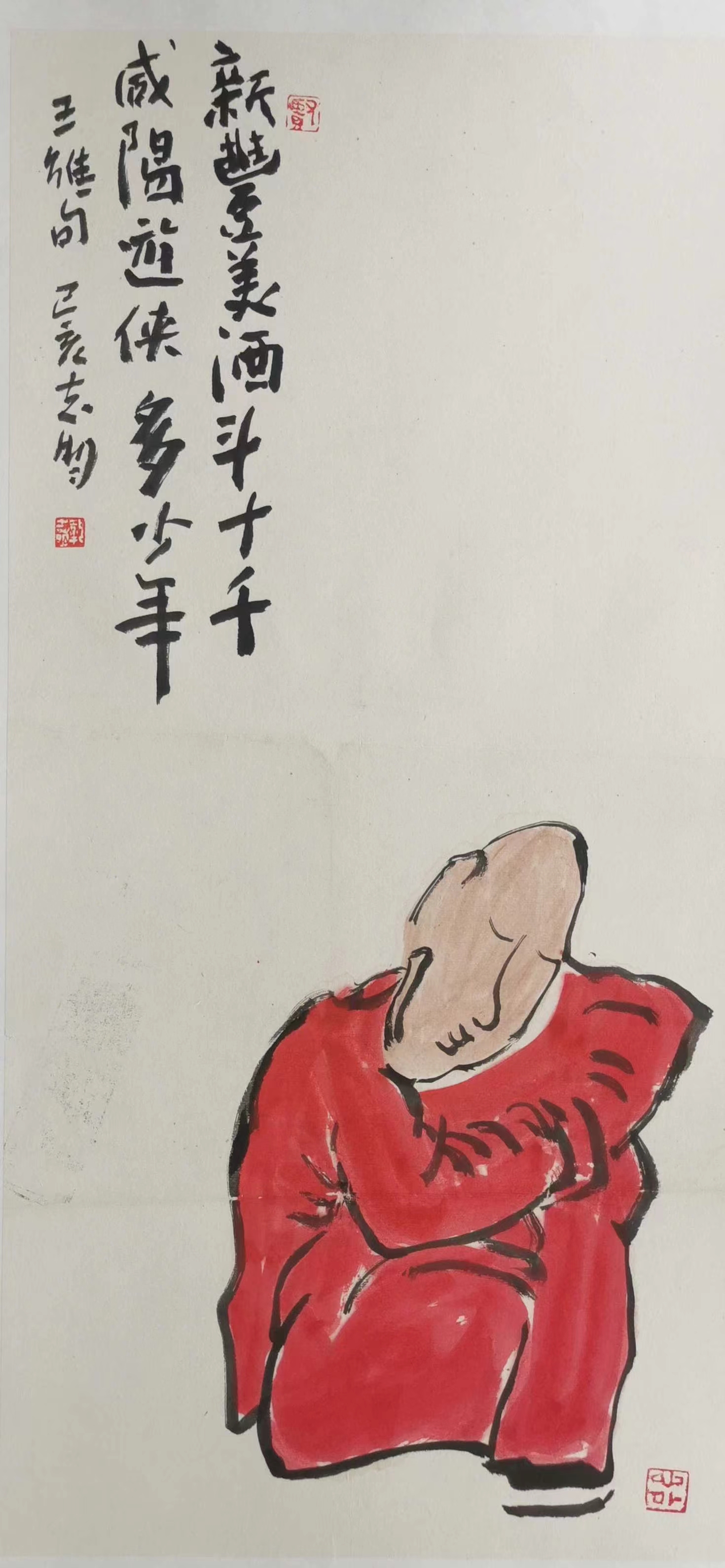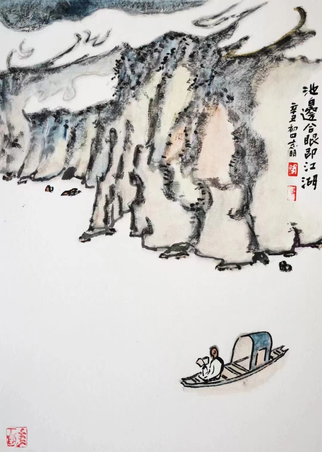 記得那一年的端午節(jié),鞏志明發(fā)來(lái)短信,是他寫的一首詩(shī):綠粽黃酒聚江邊,白帆紅燭祭屈原。三千清淚流不得,九萬(wàn)渾念飄上天。誰(shuí)有郁悶誰(shuí)散淡,何謂圓滑何忠奸。十丈風(fēng)塵古今在,談笑真?zhèn)位聼煛?017年,我遷新居,鞏老師為我寄來(lái)小品畫《福到眼前》,我很喜歡,并懸掛至新居玄關(guān)。這些年,鞏志明老師常做影展畫展策劃及影評(píng)講座,自已也臨池不輟,水墨丹青,寄情抒懷,他的文人小品有思想性、有創(chuàng)造性。雖畫的是松風(fēng)明月,小舟流水或遠(yuǎn)古人物,但都寄托了他當(dāng)下的心境,以消塊壘。誠(chéng)如有人評(píng)論他為“吾師真文人,畫亦真性情!”他不僅只是身居畫室的怡情文人,他亦是心憂天下的豪俠。面對(duì)世間不平事,他也是激揚(yáng)文字,揮斥方遒!在功利的當(dāng)下,鞏志明尤其顯得難能可貴!